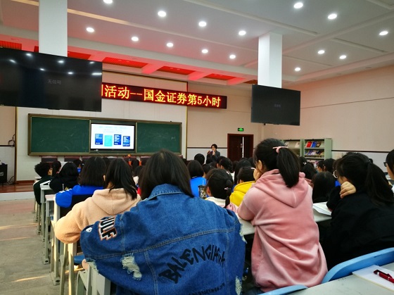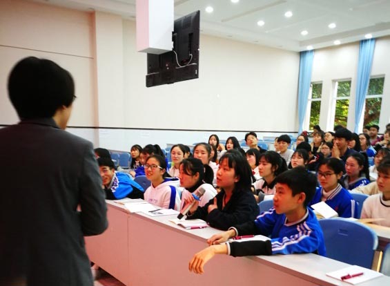 “君子有财、取之有道”,“理财生活、头头是道”,“规避风险、选择正道”,国金证券第5小时投资者教育基地讲师毛弋珏从以上三个方面,向在座师生讲解了如何树立正确的财富观,如何参与银行、保险、证券等理财,如何远离非法证券活动、校园贷等风险。通过生动的案例、细致的讲述,基地讲师向在座师生们普及了关于经济金融的基本常识,倡导了“认真地学习、努力地工作、有规律地储蓄、有节制地消费、理性地投资”的理念,引导广大师生树立理性投资意识,防范非法证券活动风险。在45分钟的讲座里,师生们听课时认真专注,互动问答时踊跃积极,现场气氛严肃又不失活泼,讲座活动效果圆满。