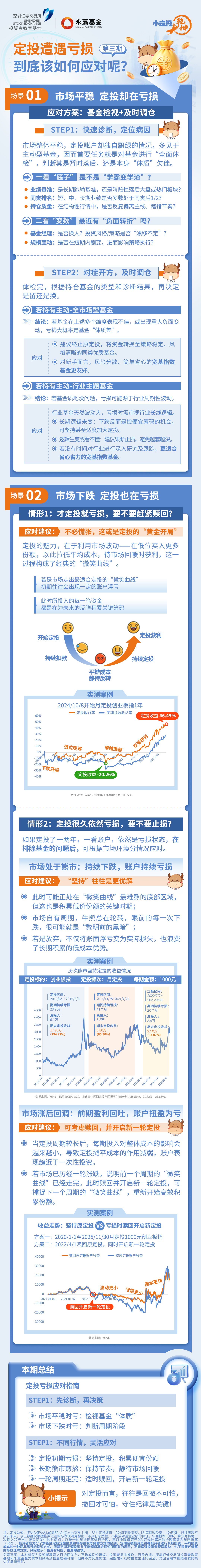 编者按:为帮助中小投资者了解基金定投方法,更好开展指数化投资,深交所投教基地联合永赢基金共同推出《小定投大乾坤》系列图文解读。今天是第3期,如果定投遭遇亏损,该怎么应对?