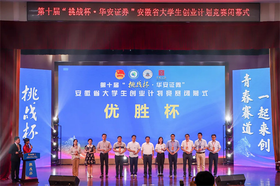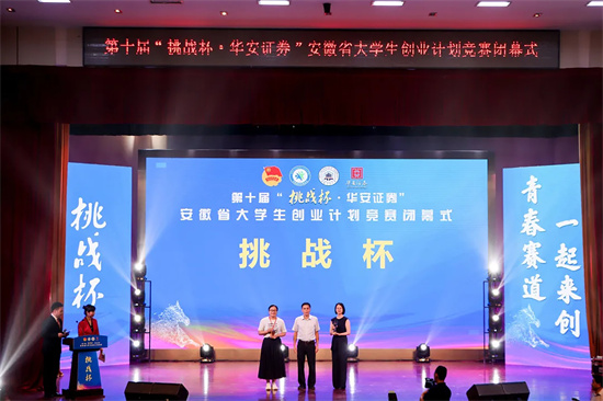 6月16日,由共青团安徽省委、安徽省教育厅、安徽省人力资源与社会保障厅、安徽省科学技术协会、安徽省学生联合会共同主办,华安证券承办的第十届“挑战杯·华安证券”安徽省大学生创业计划竞赛终审决赛在安徽工业大学落幕。共青团安徽省委书记杨正,马鞍山市委副书记张泉,省教育厅二级巡视员汤仲胜,省人社厅二级巡视员罗志年,省科协会党组成员、副主席魏军锋,华安证券党委副书记陈蓓,安徽工业大学党委书记陆林和评审专家代表、参赛高校师生代表共计600余人参加了闭幕式。