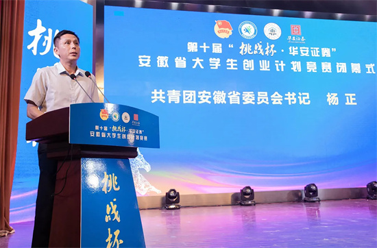 杨正代表共青团安徽省委讲话,他对本次大赛的组织工作和参赛作品给予充分肯定。他指出,深入学习宣传贯彻习近平总书记在庆祝中国共产主义青年团成立100周年大会上的重要讲话精神之际举办本次比赛意义重大。省委、省政府高度重视和支持青年创新创效创业工作,团省委按照省委、省政府的部署要求,把服务大局和服务青年紧密结合起来,逐步将“挑战杯”打造成全社会多方位共同培养创新型人才的科创育人工作体系。他希望,广大青年学生积极投身到创新创业中去,让理想信念在奋斗中升华;广大团学干部以“国之大者”的胸怀服务好高校青年创新创业;各级团组织要把组织创新创业大赛的过程当作创新教育的系统工程,推动创新创业大赛焕发活力,为建设现代化美好安徽,实现中华民族伟大复兴的中国梦贡献青春智慧和力量,以实际行动迎接党的二十大胜利召开。