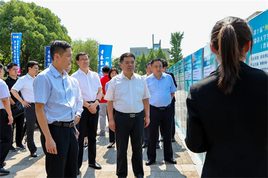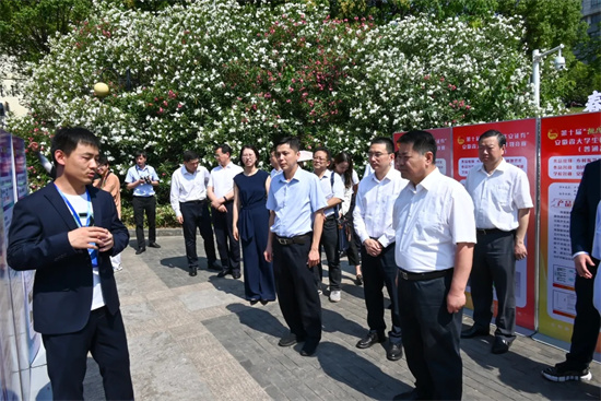 闭幕式开始前,领导嘉宾集体参加第十届“挑战杯”安徽省大学生创业计划竞赛终审决赛作品巡展,并与部分优秀作品团队学生代表亲切交流。